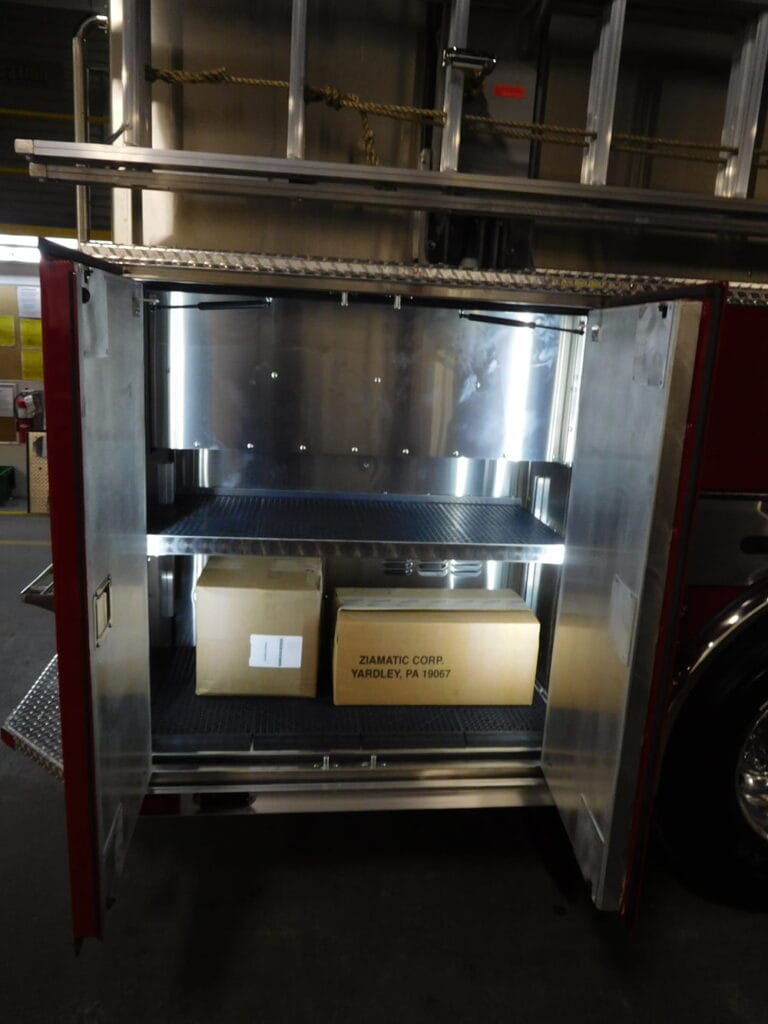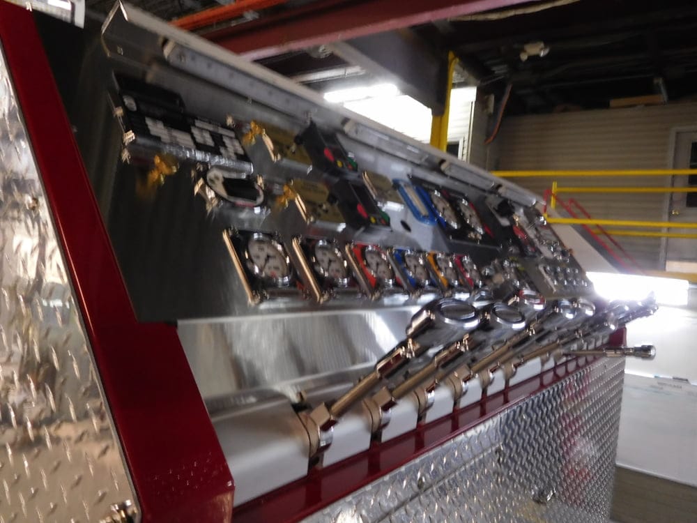 (2) 2 ½” Left, (1) 3” Right, (1) 2 ½” Right, (1) 2” Front/Left Hosebed, (1) 2 ½” Front/Left of Main Hosebed, (1) 3” Front/Right of Main Hosebed, (1) 1 ½” Front Bumper, (1) 3” Deck Gun